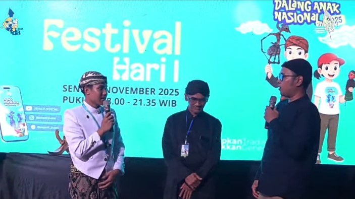 REMBANG – Dalang cilik asal Kabupaten Rembang, Jawa Tengah, Muh. Amin Al-Basri, tampil memukau di ajang Festival Dalang Anak (FDA) Nasional 2025 yang digelar di Gedung Pewayangan Kautaman, Taman Mini Indonesia Indah (TMII), Jakarta, Senin (3/11/2025).