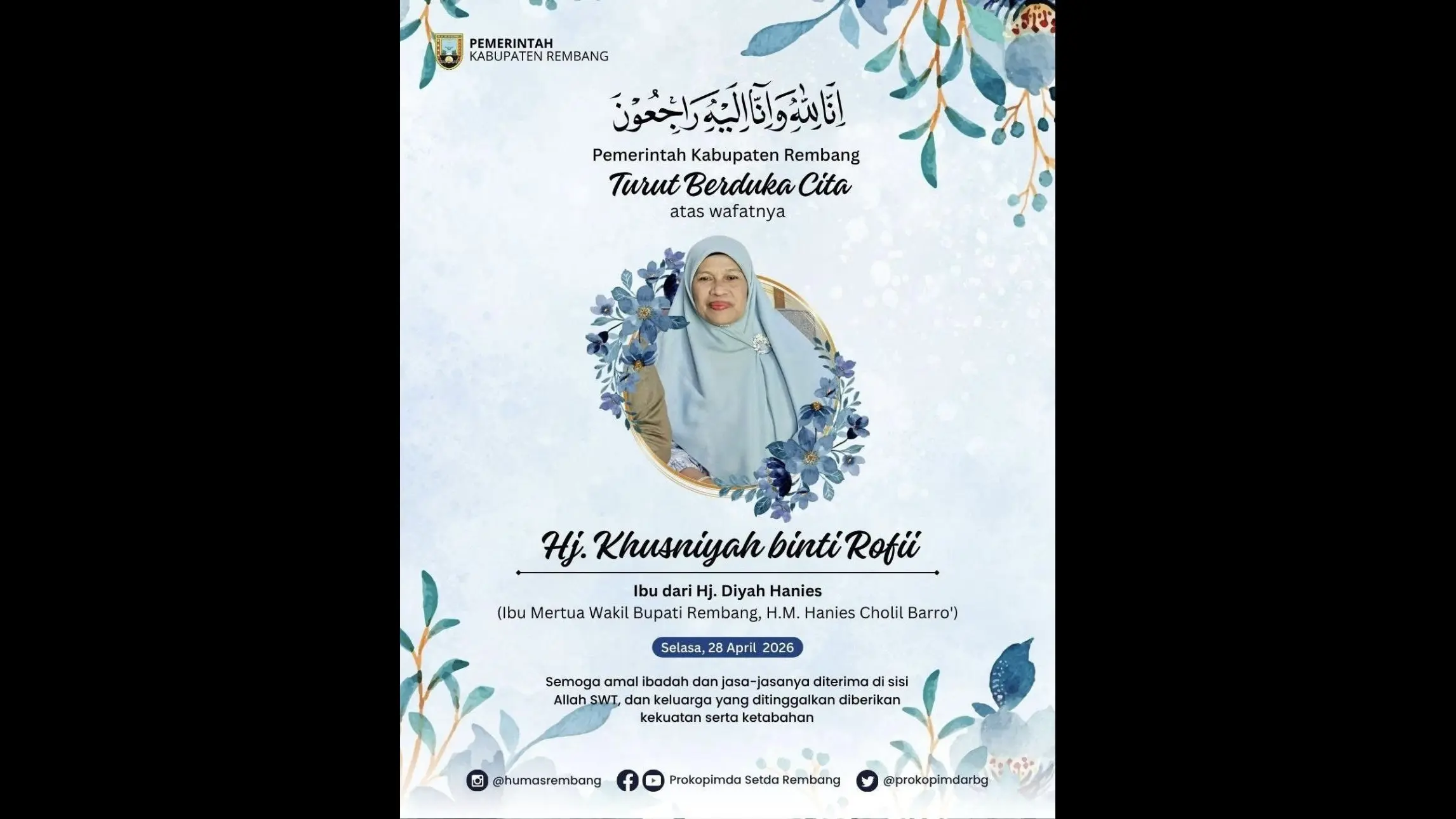 Informasi wafatnya almarhumah juga disampaikan melalui flyer resmi yang dirilis Prokopimda Setda Rembang. Dalam flyer tersebut tertulis ungkapan duka cita disertai doa untuk almarhumah.