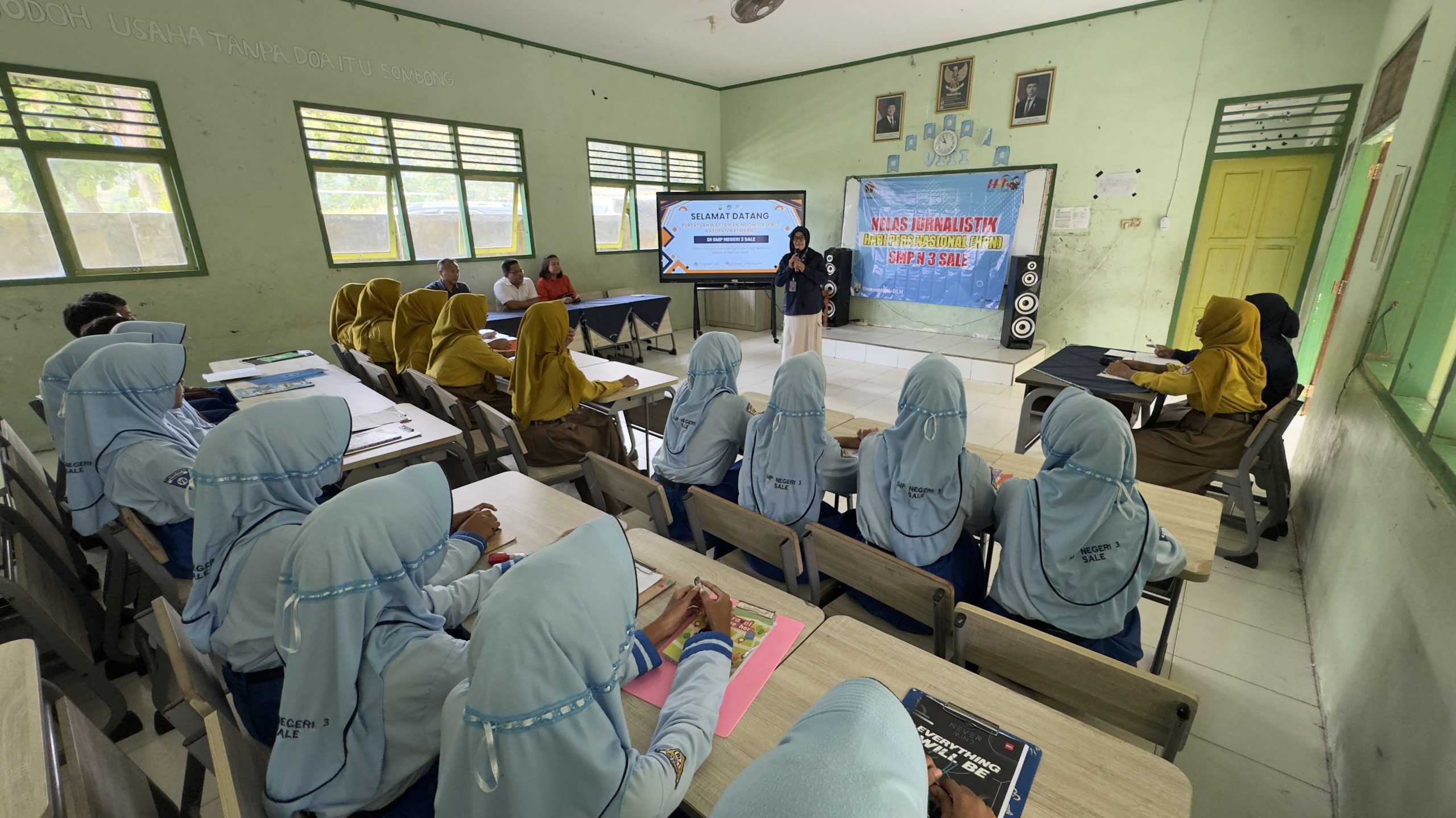 Kepala Sekolah SMP N 3 Satu Atap Sarang, Eni Arianti meminta anak didiknya bersungguh-sungguh menhikuti program kelas jurnalistik. Karena kegiatan ini merupakan kesempatan langka dalam mengasah keahlian menulis.